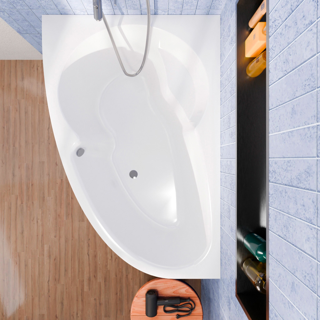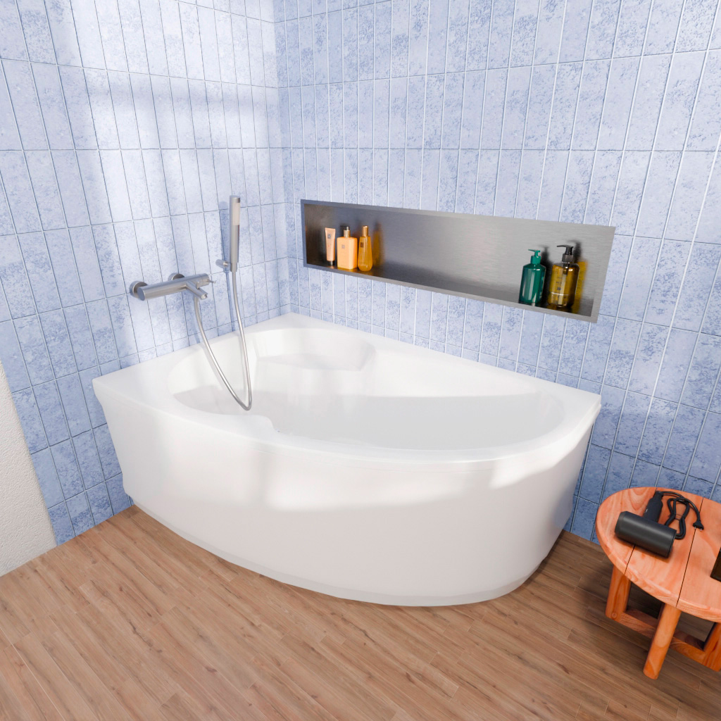 • Siko 140 x 95 cm Luiza baignoire d'angle gain de place, orientation gauche en acrylique, Blanc (LU1400L)