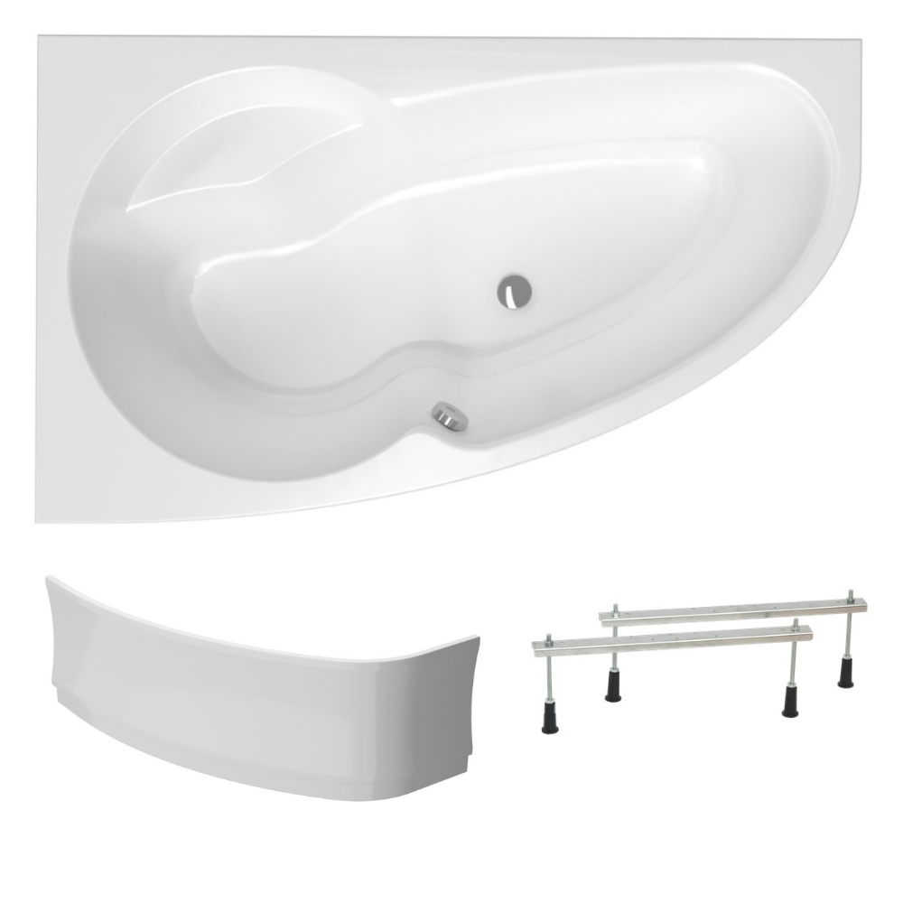 Siko 150x95 cm Laguna Luiza baignoire asymétrique en acrylique, gauche + tablier 150 cm + pieds, blanc (LU1500L-SET1)