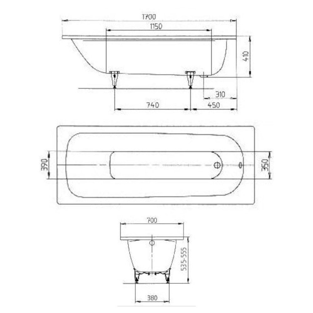 Caractéristiques de la Saniform Plus Baignoire rectangulaire avec pieds 170x70 cm acier émaillé + , Blanc alpin (111800010001-SET) :