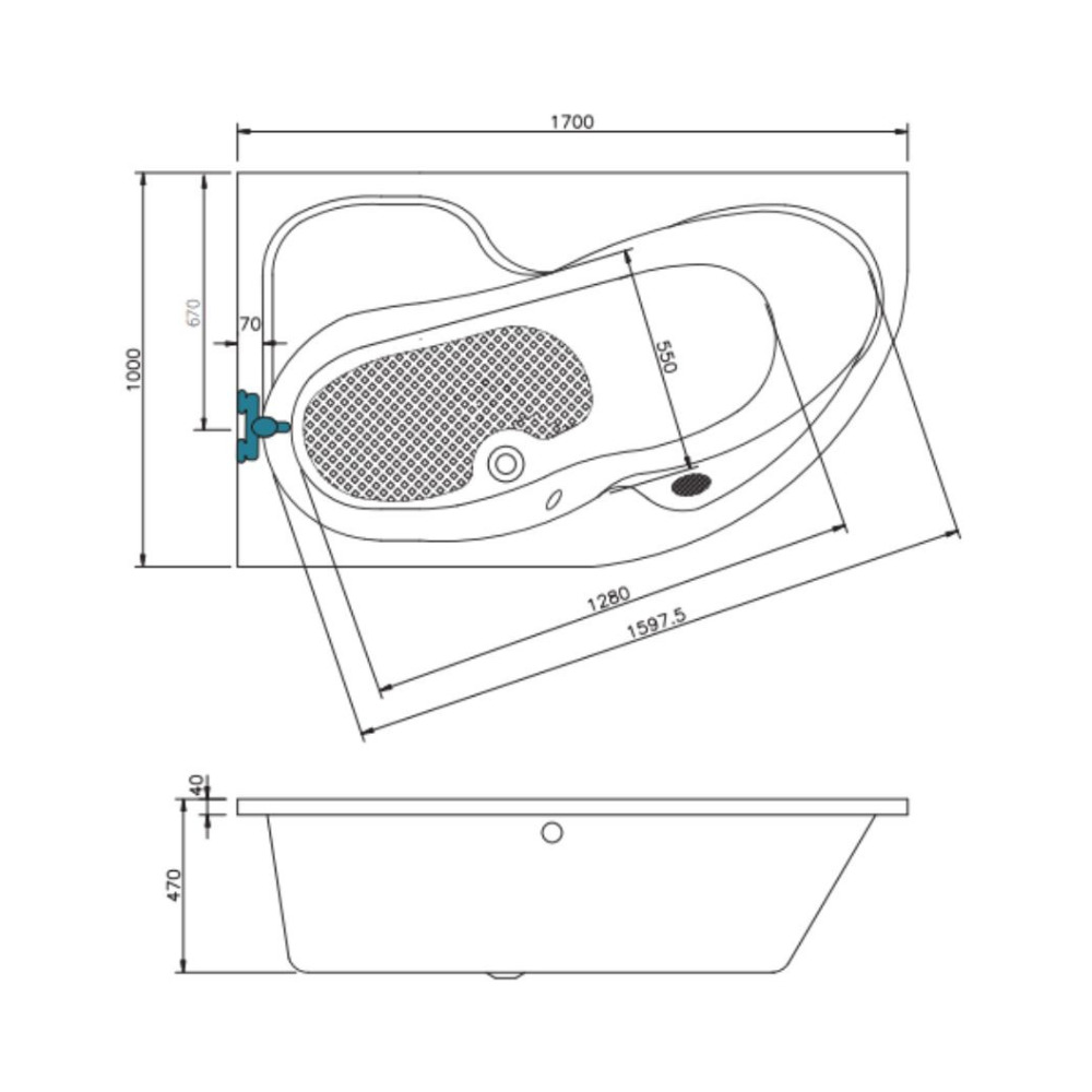 - Type de baignoire:Asymétrique