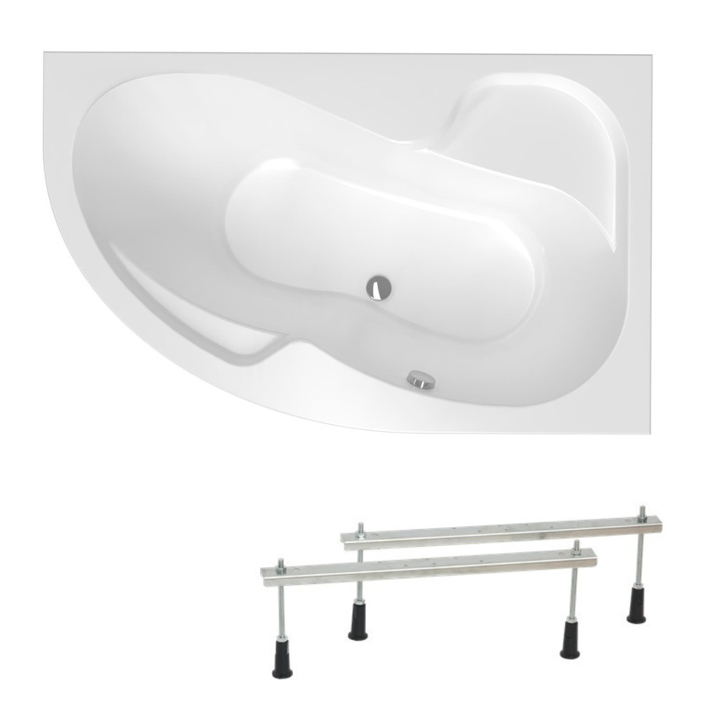 Siko 160x100 cm Fortuna Plus baignoire d'angle avec pieds, Acrylique, Droite, Blanc (FO1600PPLUS-SET)
