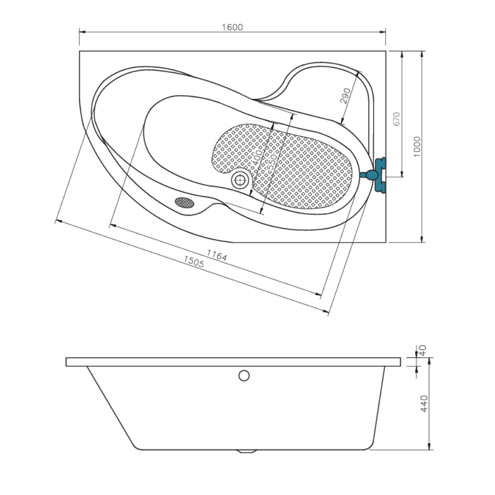 - Type de baignoire:Asymétrique