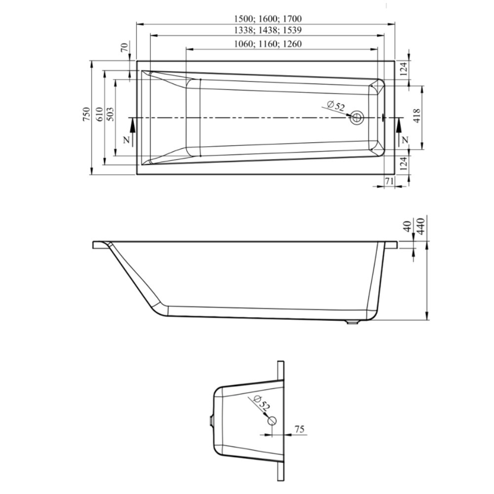 - Baignoire à bac rectangulaire orientation gauche et droite