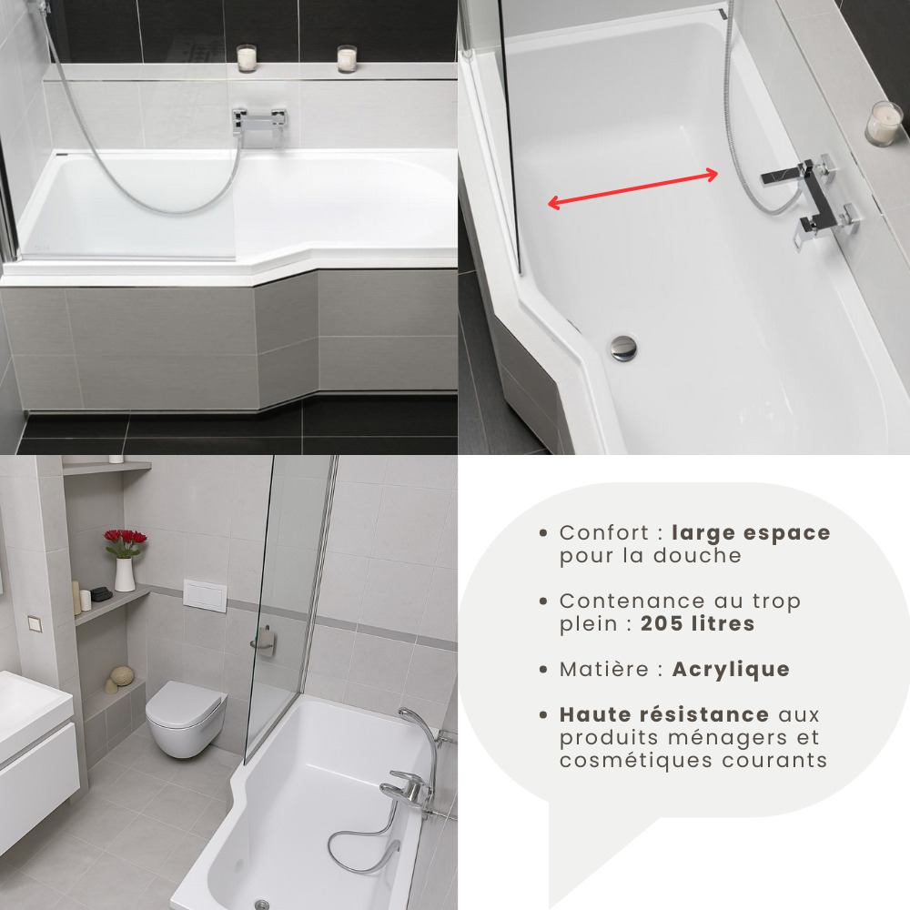 - Type de baignoire : Asymétrique