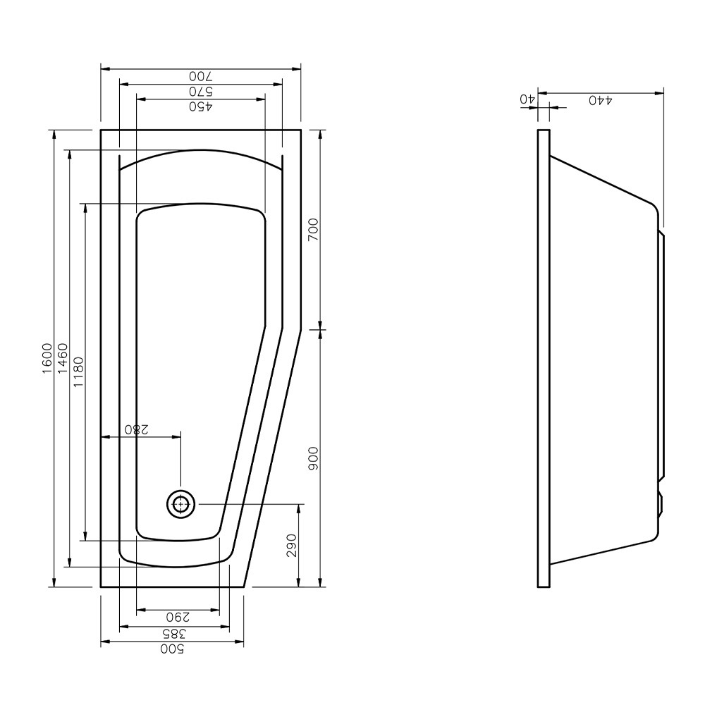 160x70 cm Aneta baignoire bain douche asymétrique en acrylique positionnement droite, blanc (AN1600PPLUS) :