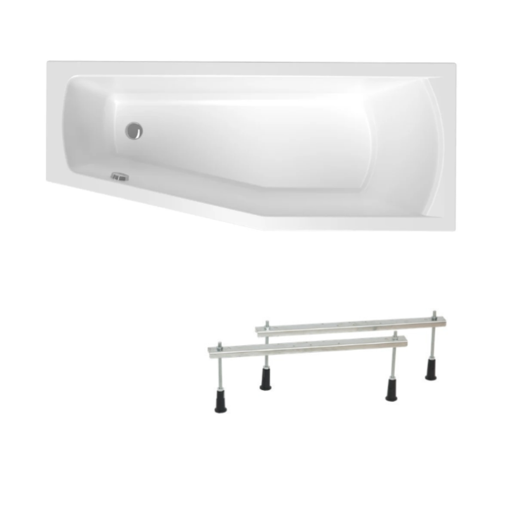 Siko 160x70 cm Laguna Aneta baignoire bain/douche asymétrique avec pieds, acrylique, droite, blanc (AN1600PPLUS-SET)