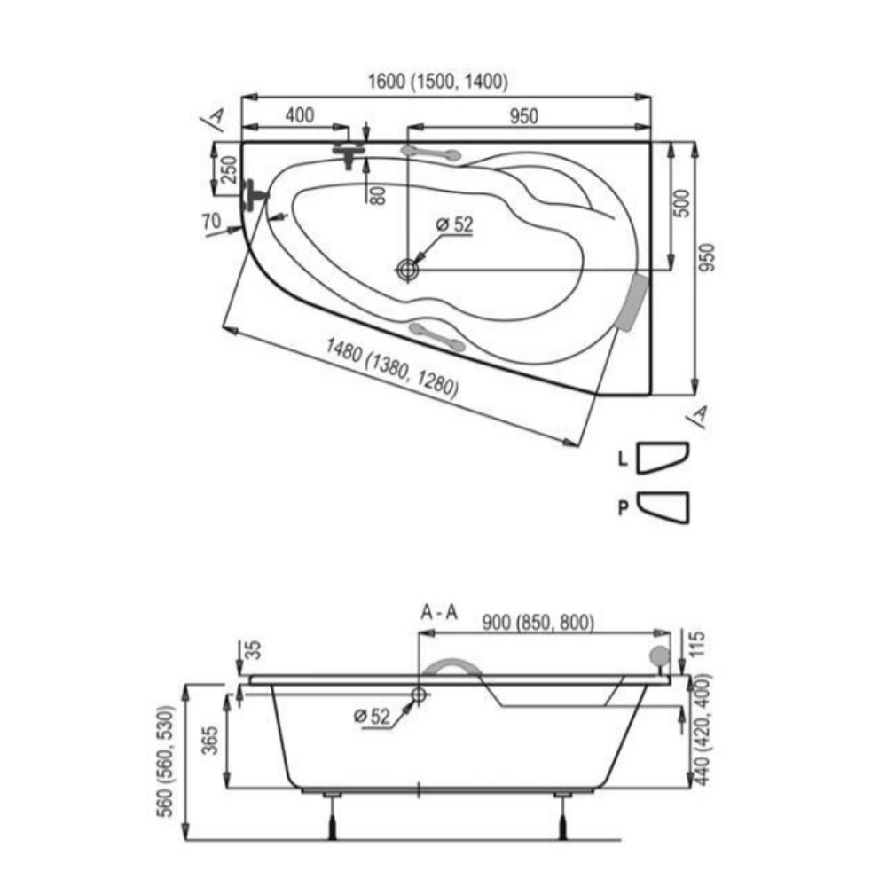 • Siko 140 x 95 cm Luiza baignoire d'angle gain de place, orientation droite en acrylique, Blanc (LU1400P)