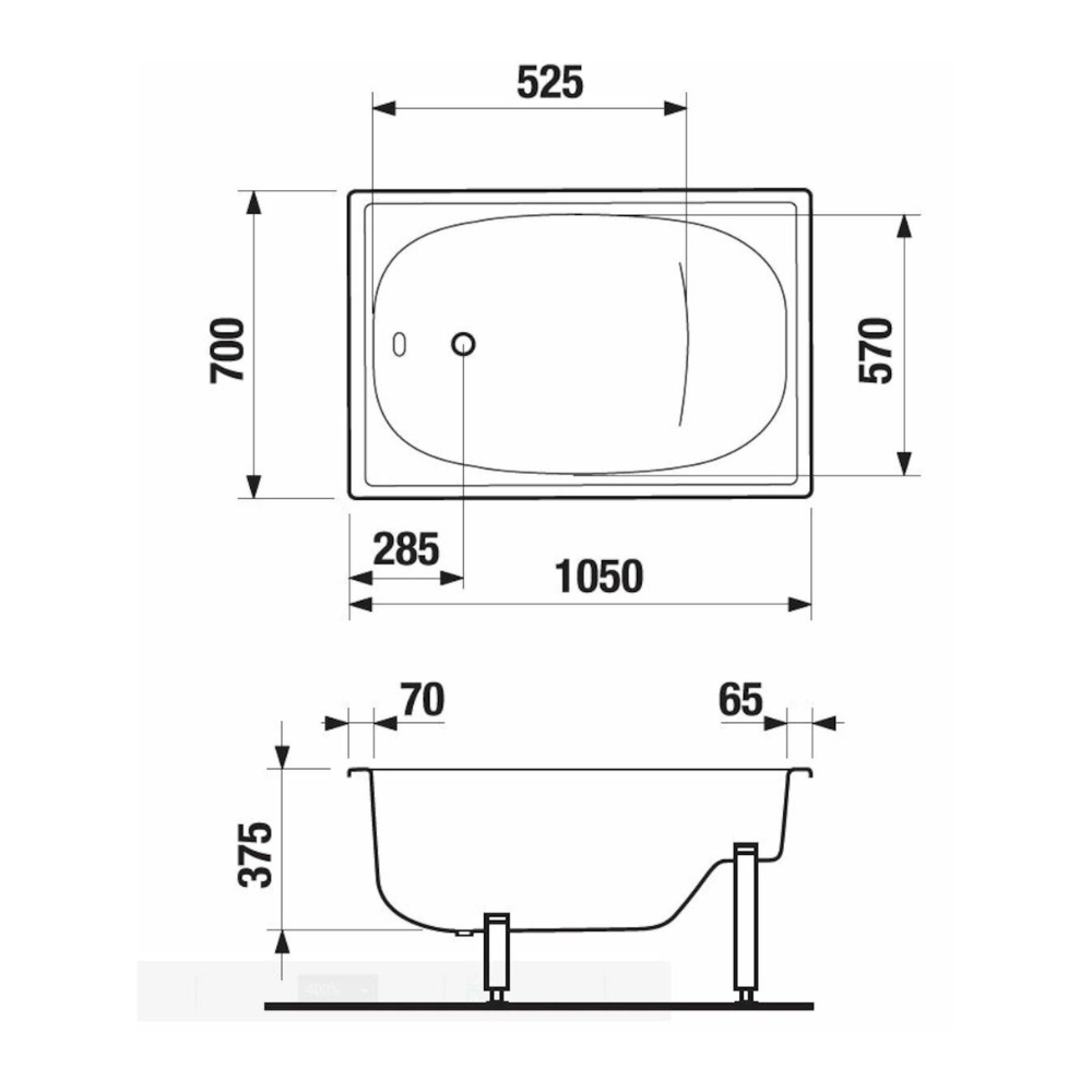 - Jika (groupe Roca) Riga 105 x 70 x 37.5 cm Baignoire gain de place en acier émaillé, sans pieds, blanc (H2340000000001)