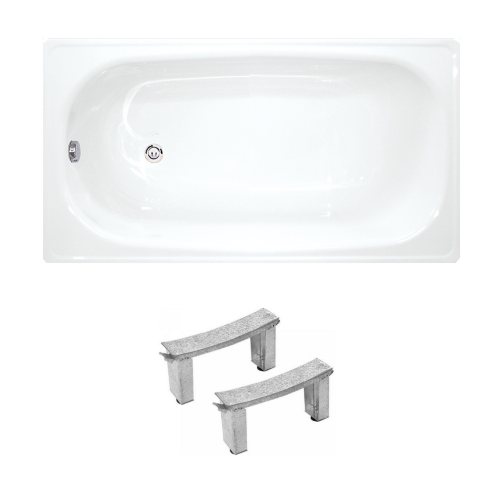 Jika (Groupe Roca) Riga 130x70 cm baignoire gain de place 150 L en acier émaillé avec pieds, gauche et droite, blanc (3403-SET)