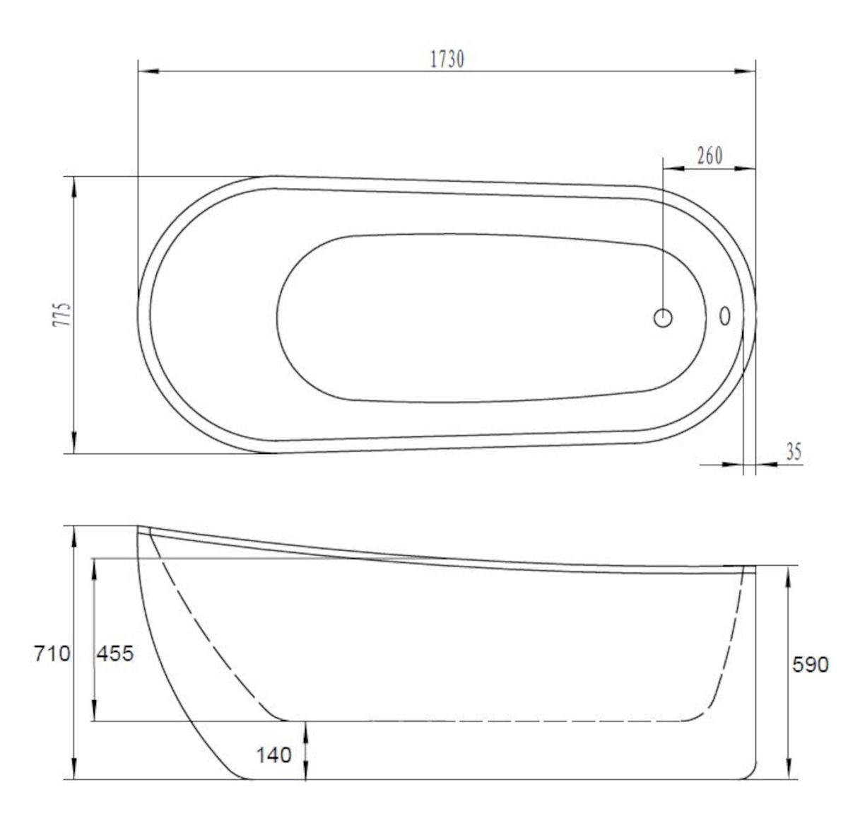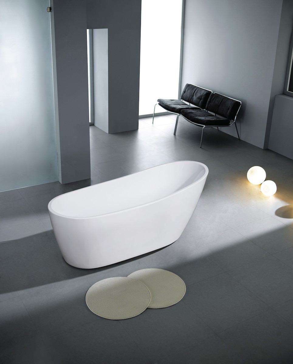 Siko Karyn 175 x 77 cm Baignoire îlot en acrylique, sans pieds, blanc (KAR1700)