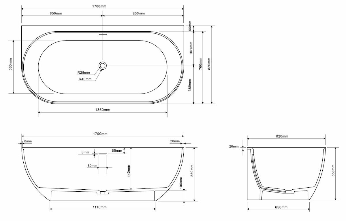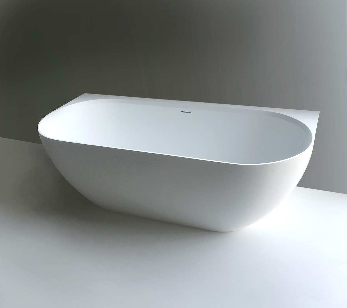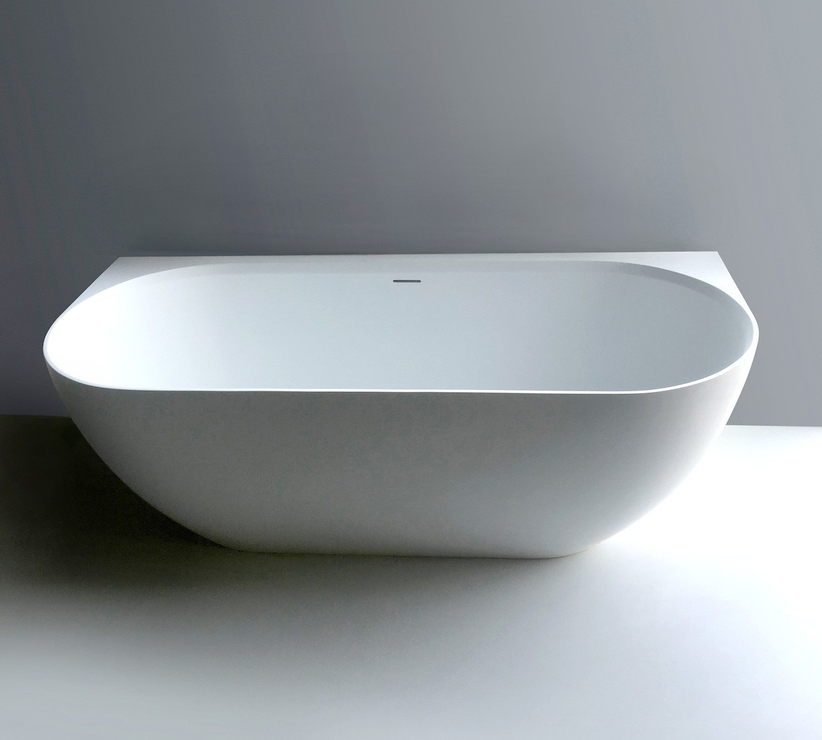 Swiss Aqua Technologies Lesly 170 x 82 cm Baignoire semi-îlot en marbre coulé, sans pieds, blanc (LE1700)