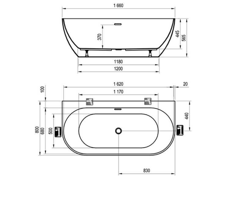 Caractéristiques de la Baignoire semi-îlot 166 x 80 cm en acrylique, Blanc, Ravak Freedom W (XC00100024) :
