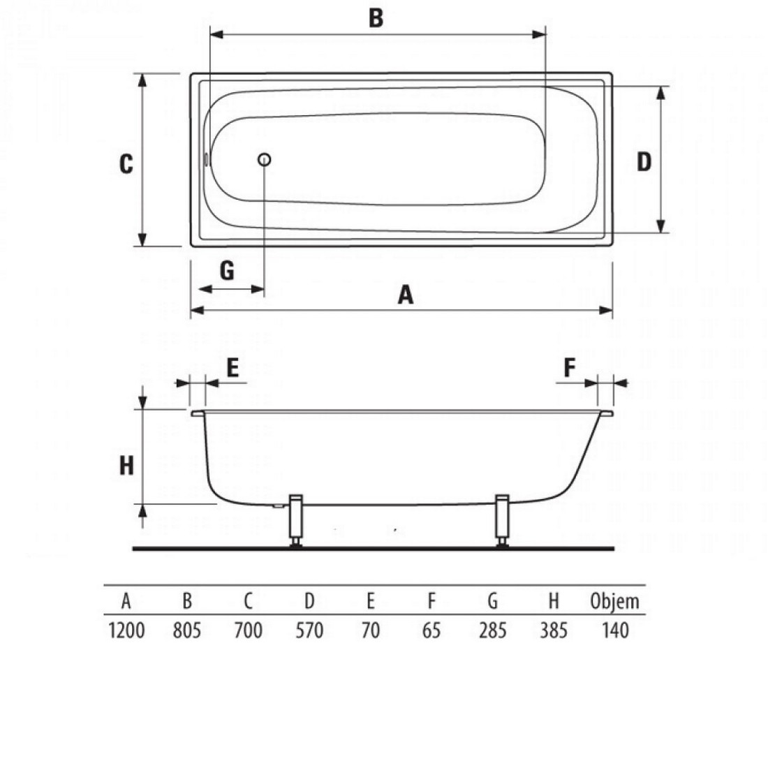 Laissez-vous séduire par la simplicité de la Baignoire rectangulaire gain de place 120x70 cm en acier émaillé, Blanc (H2340200000001).