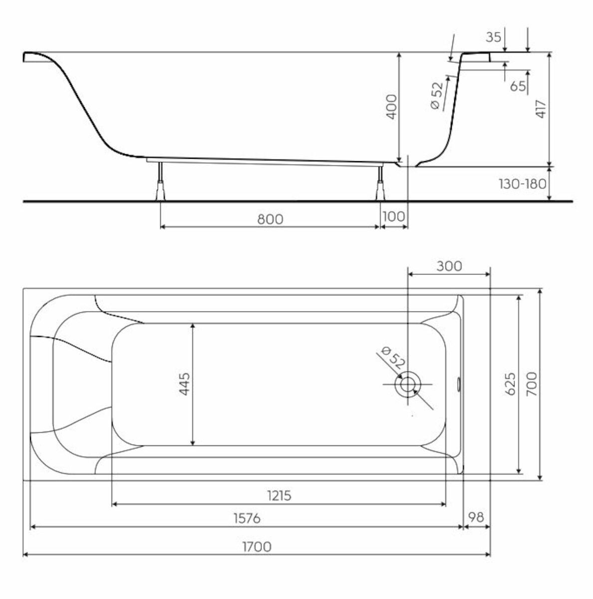 KOLO by Geberit Rekord 170 x 70 cm Baignoire droite avec pieds en acrylique, blanc (XWP1670000)