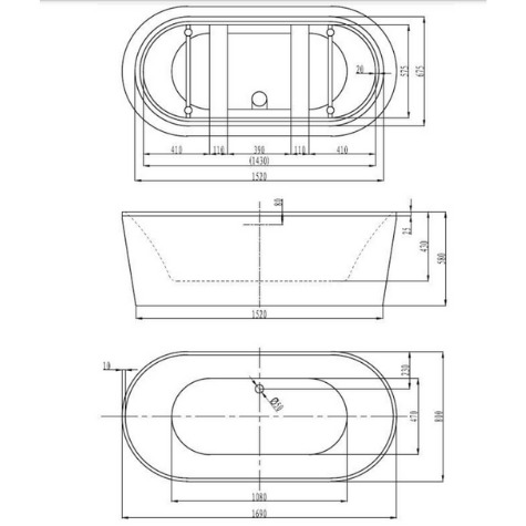 Siko ZARA 169 x 80 cm Baignoire îlot en acrylique, sans pieds, blanc (ZA1700)