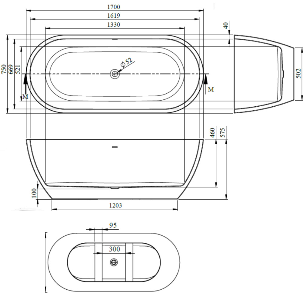 Caractéristiques de la baignoire îlot 170 x 75 cm en acrylique + Siphon, Blanc, Swiss Aqua Technologies Dua (SATDUA1700) :