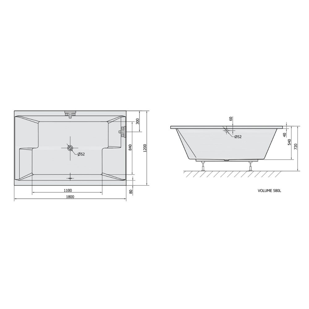 Polysan Dupla 180x120 cm Baignoire rectangulaire orientation gauche et droite en acrylique, sans pieds, blanc (13611)