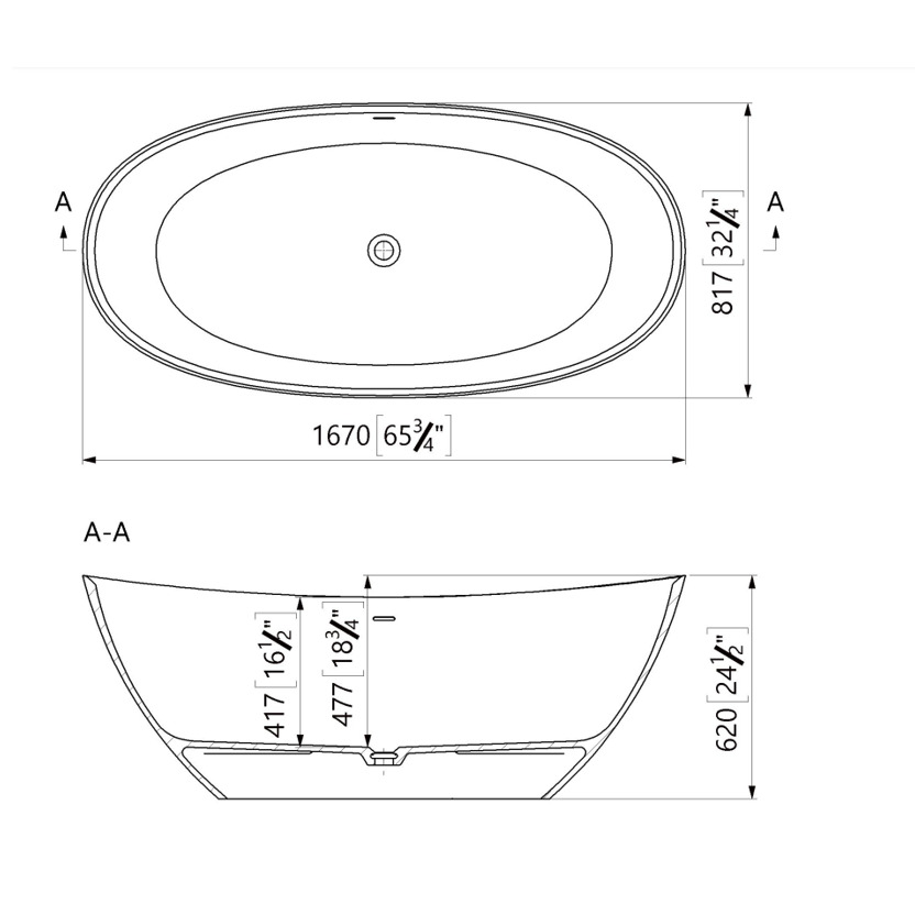 Caractéristiques de la Swiss Aqua Technologies Paula Baignoire îlot 167x81,8 en Marbre Coulé, (SATPA1670):