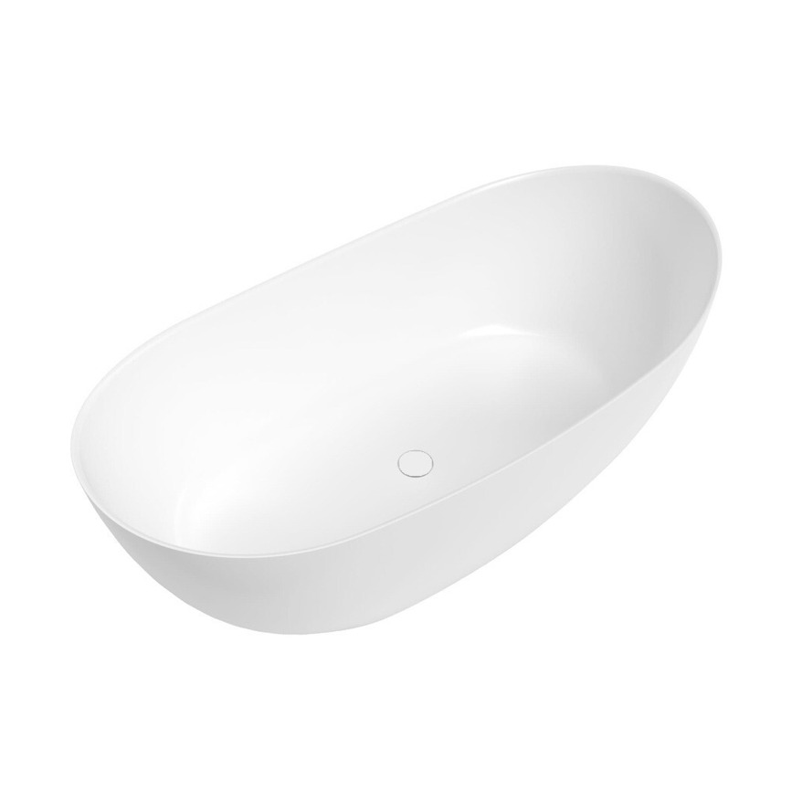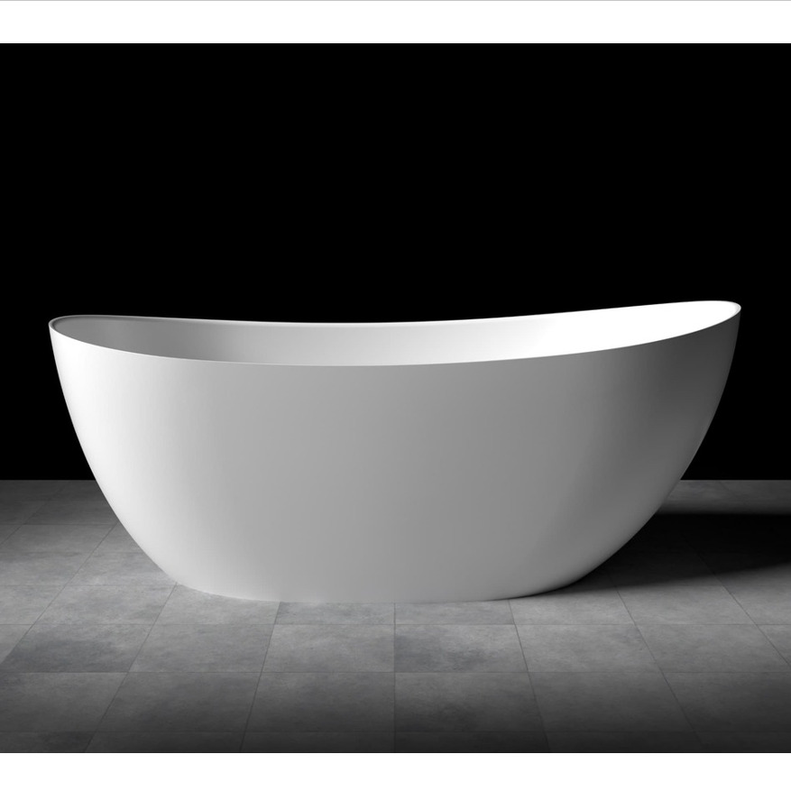 Swiss Aqua Technologies Mette 158x77 cm Baignoire îlot en marbre Coulé 280L, sans pieds, blanc, (SATMET1580)