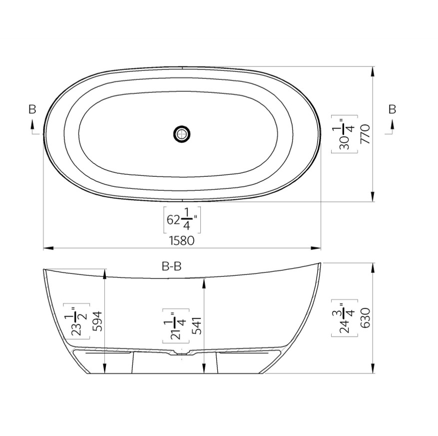 Caractéristiques de la Swiss Aqua Technologies Mette Baignoire îlot 158x77 en Marbre Coulé 280L, Blanc, (SATMET1580)