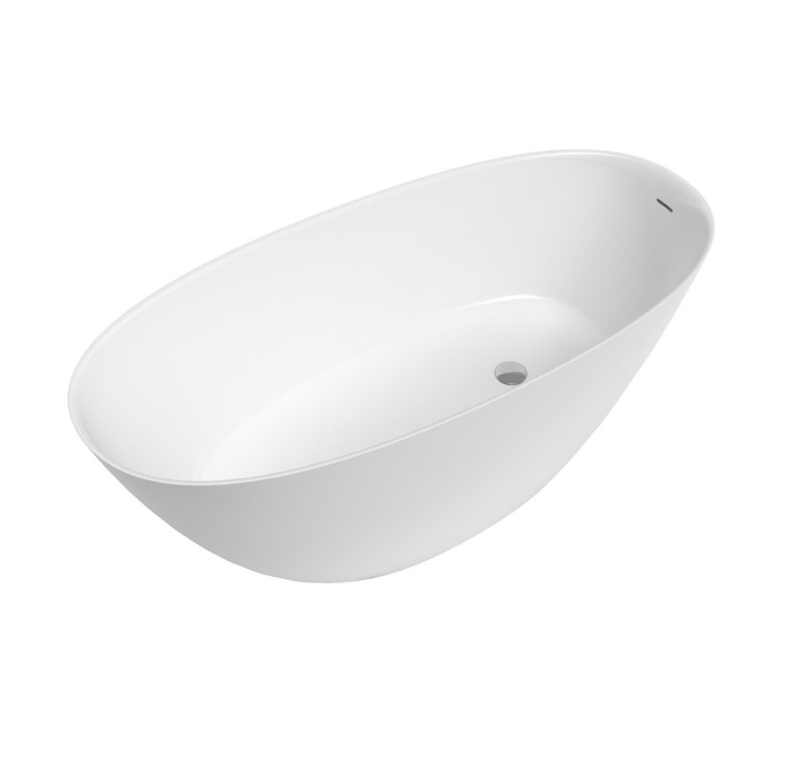 Swiss Aqua Technologies Amika 157x68 cm Baignoire îlot en marbre Coulé 210L, sans pieds, blanc (SATAMI1570)