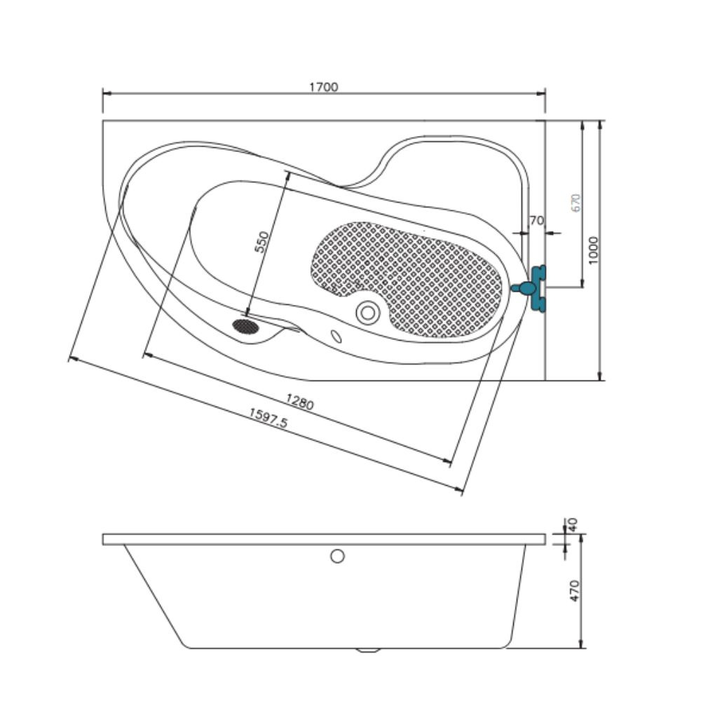 Siko 170x100 cm Fortuna Plus baignoire asymétrique en acrylique, droite, sans pieds, blanc (FO1700PPLUS)