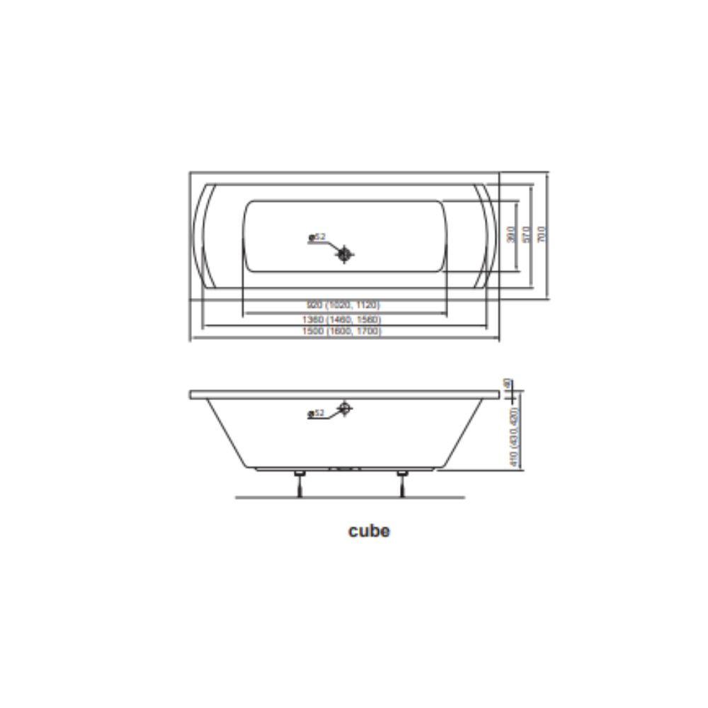 Caractéristiques de la baignoire rectangulaire Laguna Cube Way Plus, 250 L, 160x70 cm, acrylique, gauche et droite, blanc (CUB1600PLUS) :
