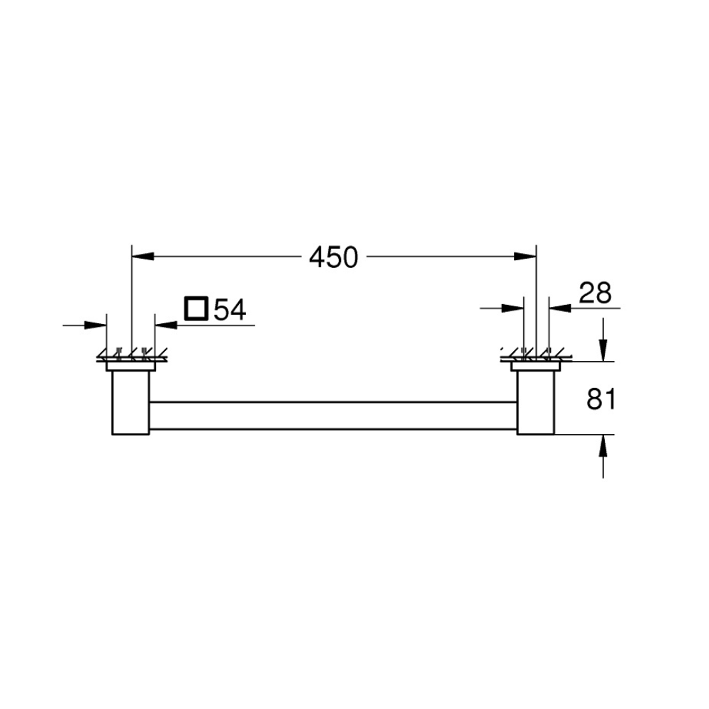 Caractéristiques de la barre d'appui PMR 50,4 cm pour baignoire, Grohe Start Cube, inox (41095DC0) :