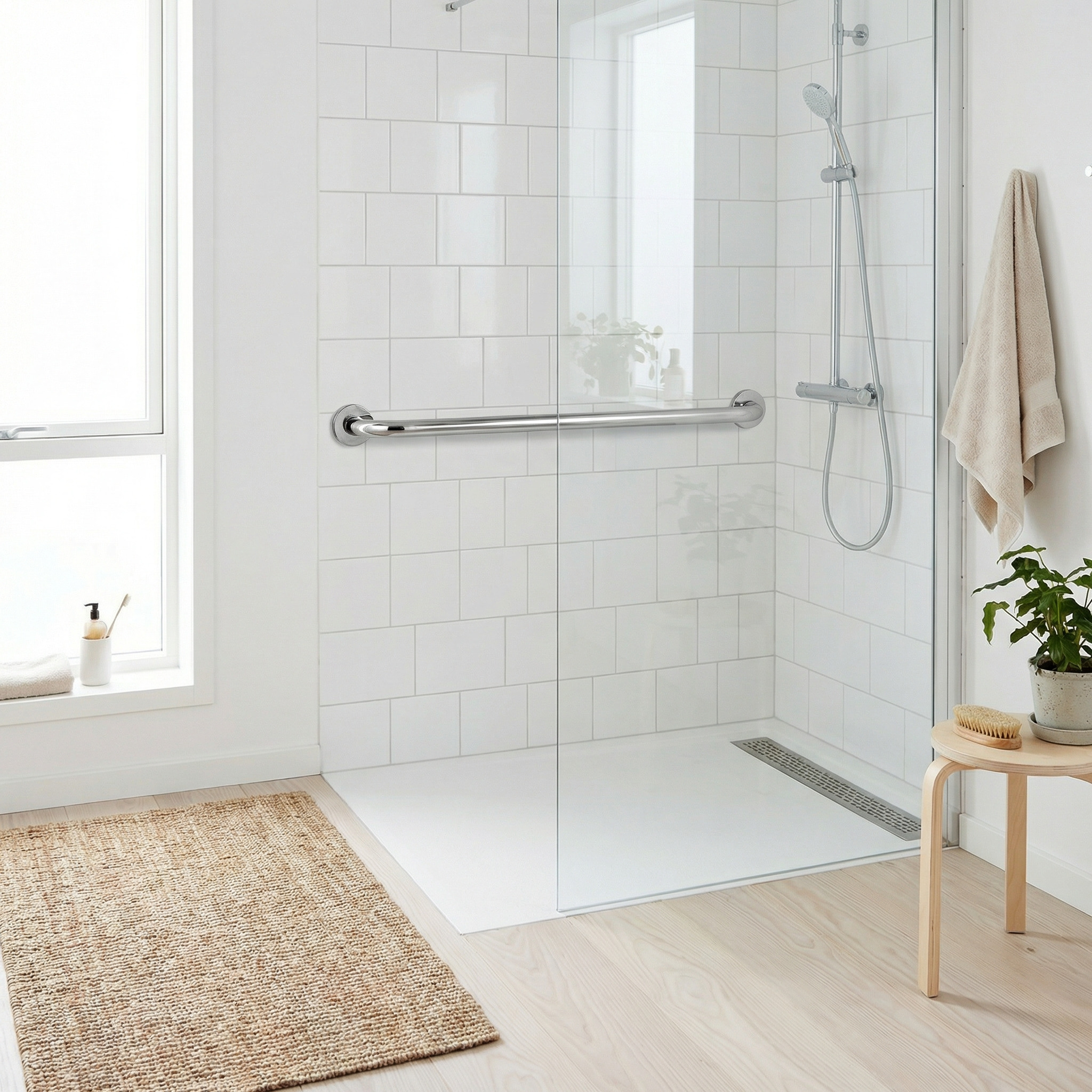 Sa finition blanche apporte une intégration visuelle discrète et harmonieuse, sans aspect médical. Conçue pour améliorer la stabilité et préserver l’autonomie, elle convient aussi bien aux personnes à mobilité réduite qu’aux seniors, dans un logement privé ou des espaces accessibles PMR.