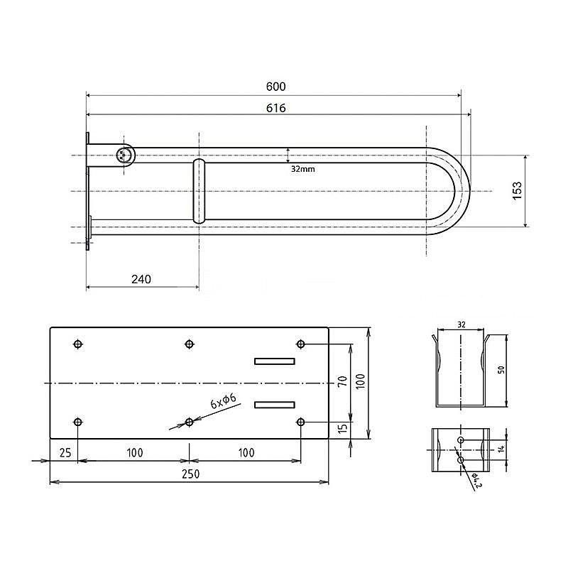Caractéristiques de la Barre de maintien relevable 61,6cm, en forme de U, Acier inoxydable, Bemeta HELP (301102071) :