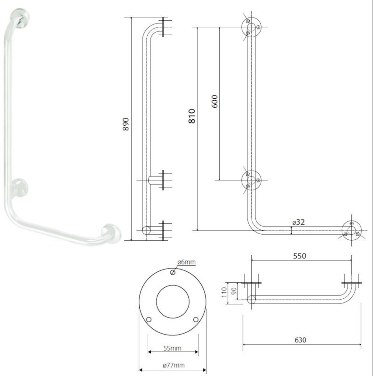 Barre de maintien murale gauche