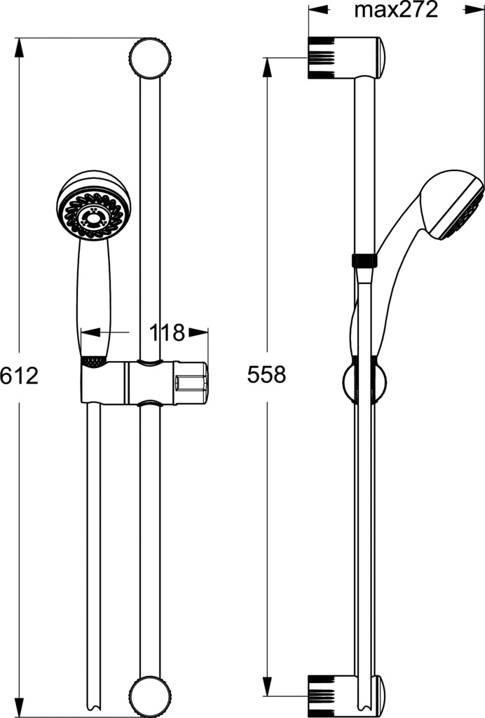 Porcher Barre de douche Aqua 61 cm, Douchette 2 jets, chromé (D6040AA)