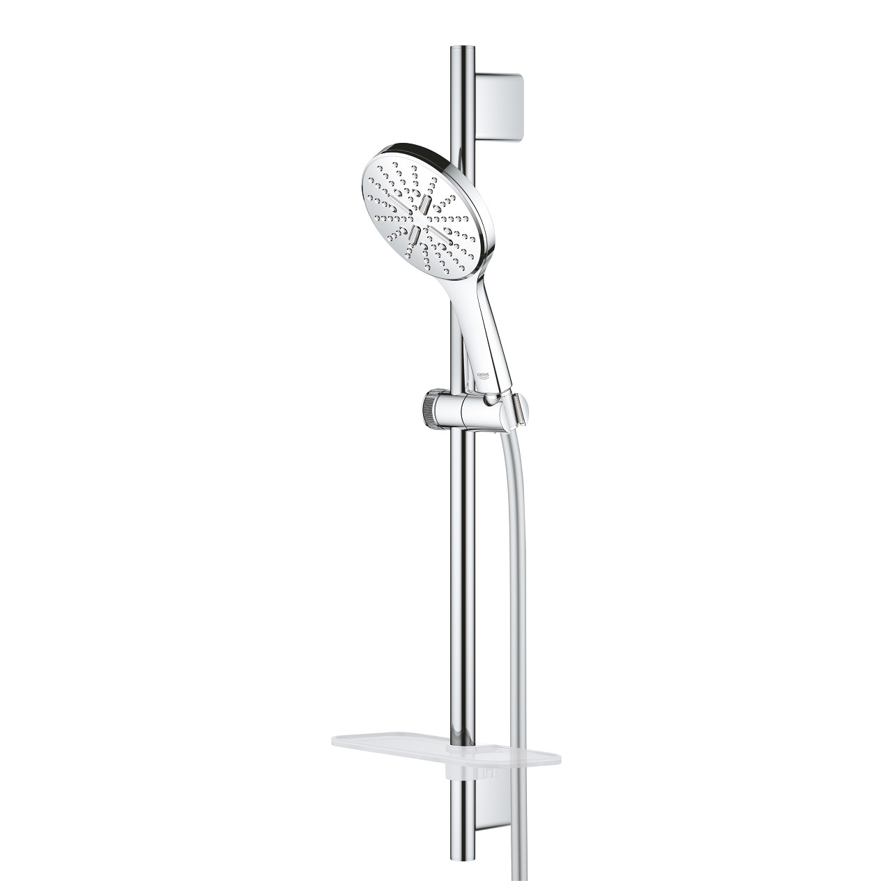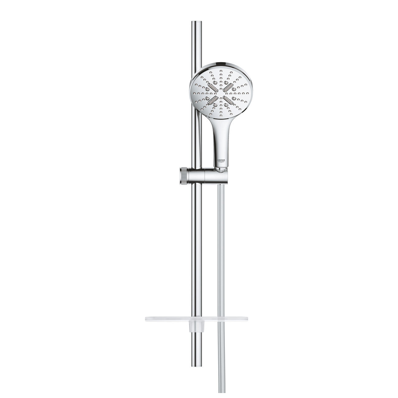 Caractéristiques de la Barre de douche 63cm avec Douchette à main 3 jets + Flexible 1,75cm, Chrome, Grohe Rainshower Smartactive 130 (26575000) :