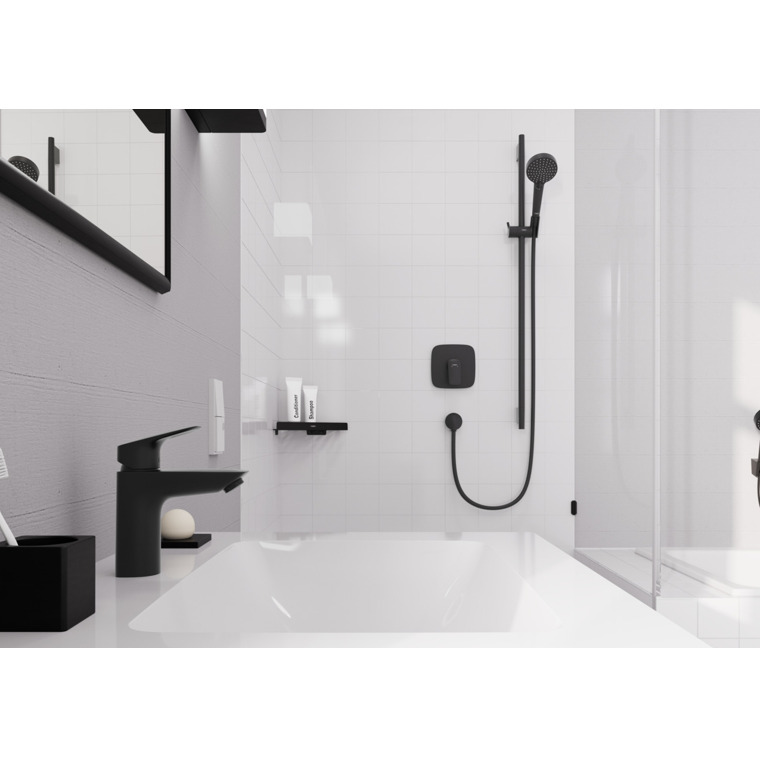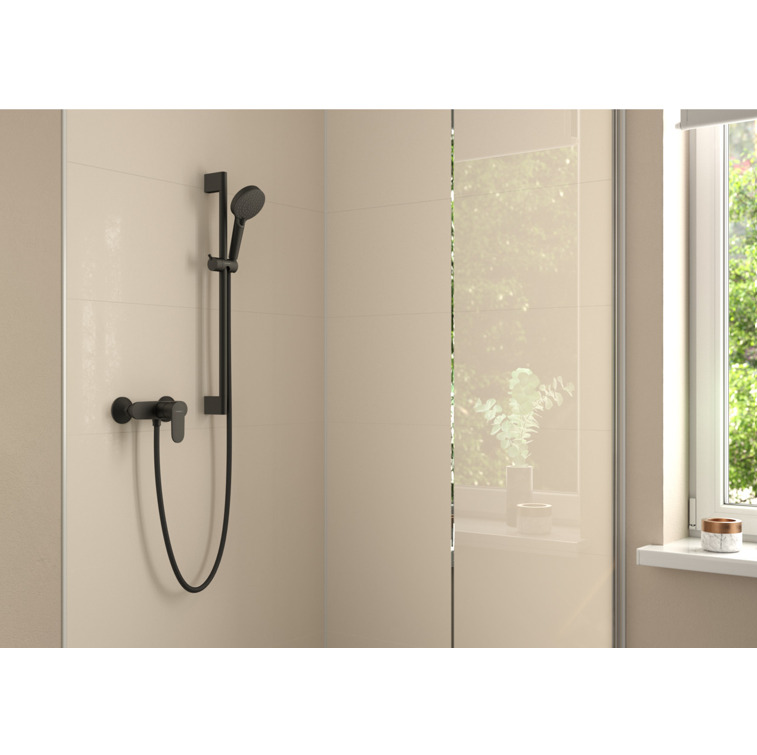Caractéristiques du Set de douche avec douchette à main 2 jets + Barre Unica 65 cm, Noir mat, Hansgrohe Vernis Blend (26422670) :