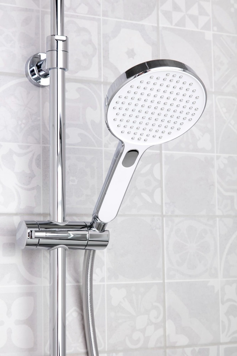 Ce set de douche détient une tête de douche XL ronde de 25.4cm, curseur et douchette 3 jets avec un bouton vous permettant de changer facilement de jet.
