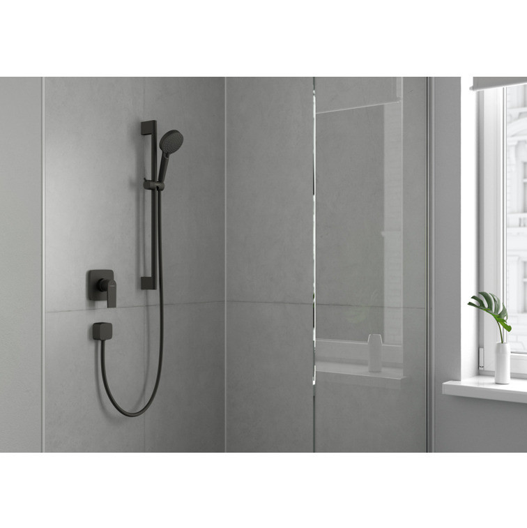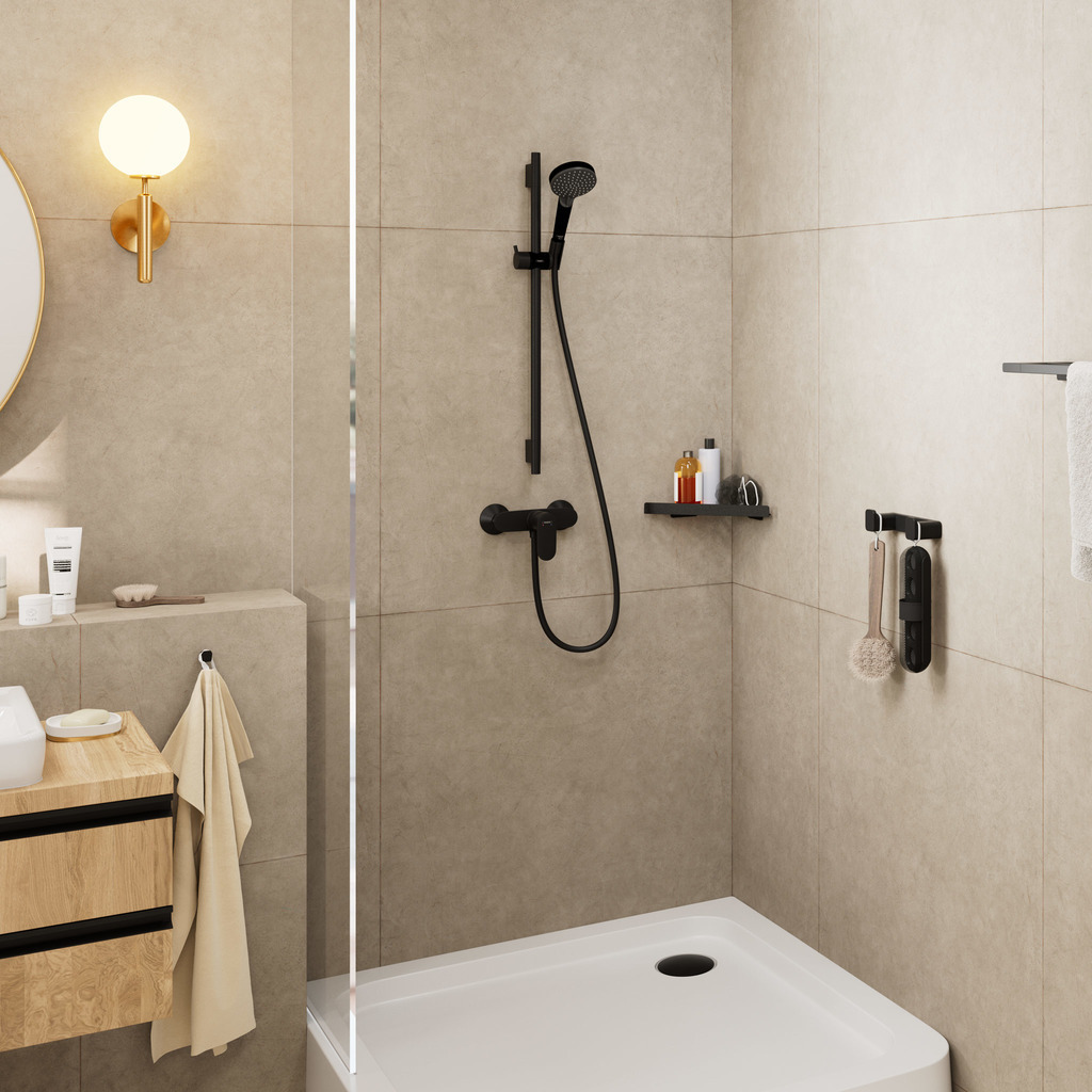 Caractéristiques du Set de douche avec douchette à main 2 jets + Barre Unica 65 cm, Noir mat, Hansgrohe Vernis Blend (26422670) :