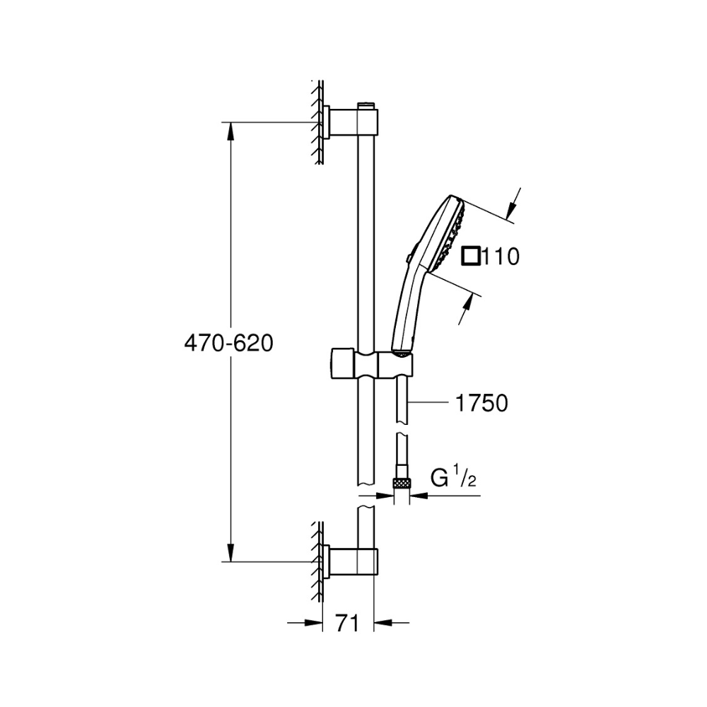Caractéristiques du set de douche avec barre + Douchette 3 jets, chrome Grohe Vitalio Comfort 110 (G26096001) :