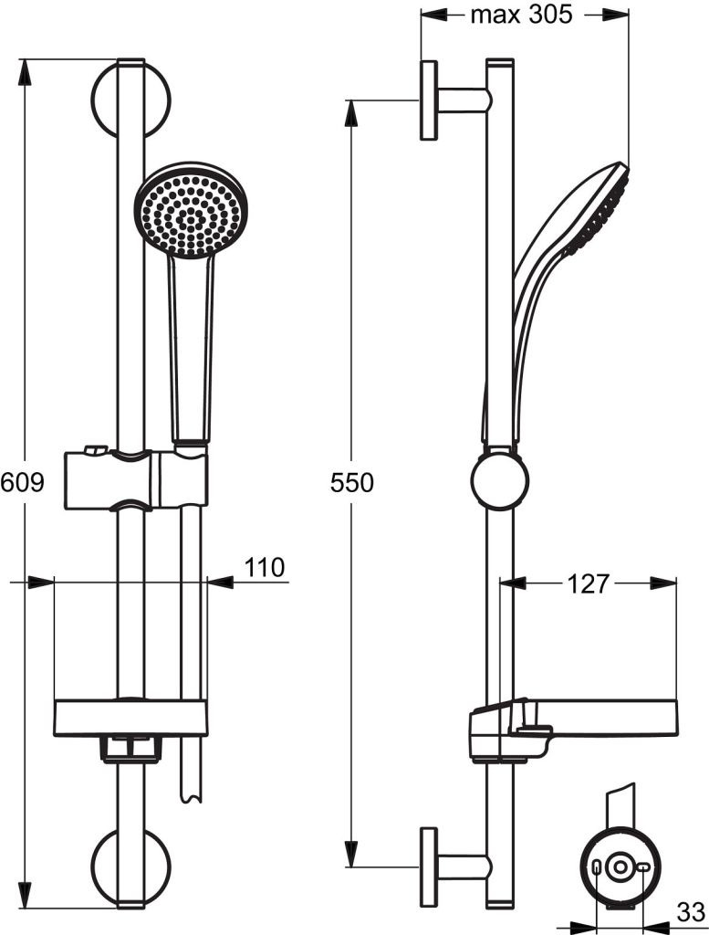 Ideal Standard IDEALRAIN Barre de douche 60 cmDouchette 1 jet - Ø 8 cm - chrome (B9501AA)