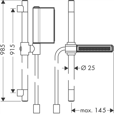 - Comprenant : douchette tube, barre murale AXOR Starck 0,9 m, flexible de douche, curseur,