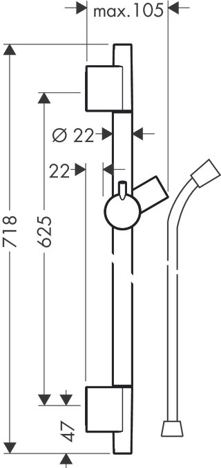 Hansgrohe Unica Barre de douche S Puro 65 cm avec flexible de douche noir chromé brossé (28632340)