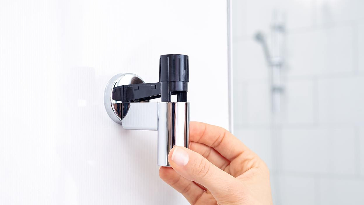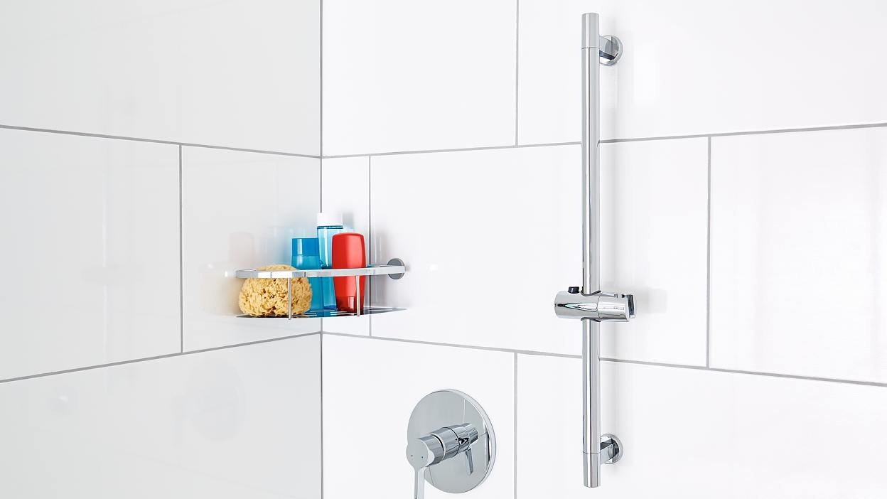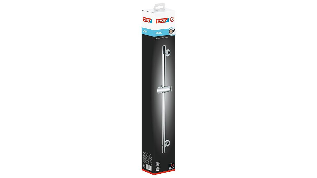 - Barre de douche avec technologie tesa® Power.Kit brevetée (solution de fixation complète)