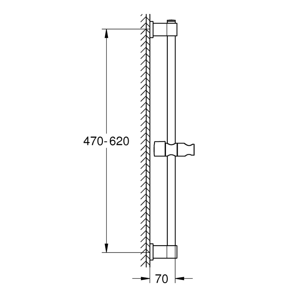 Caractéristiques de la barre de douche 600 mm Ø 22 mm, Grohe Vitalio Universal, noir mat (277242431) :