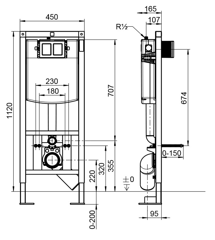 Caractéristiques du bâti-support autoportant pour WC suspendu Villeroy & Boch ViConnect (92246500) :
