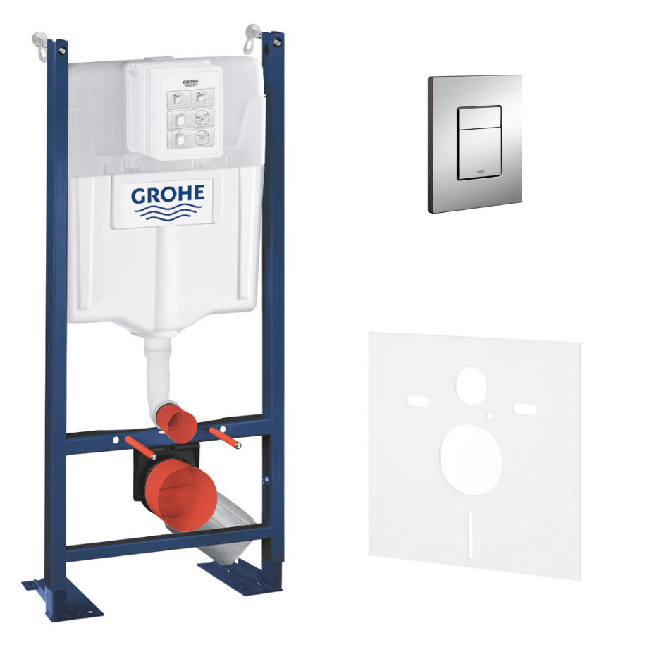 Grohe Pack WC Bâti autoportant Rapid SL avec Plaque Skate Cosmopolitan chromée et Set d'isolation phonique (39145000-1)