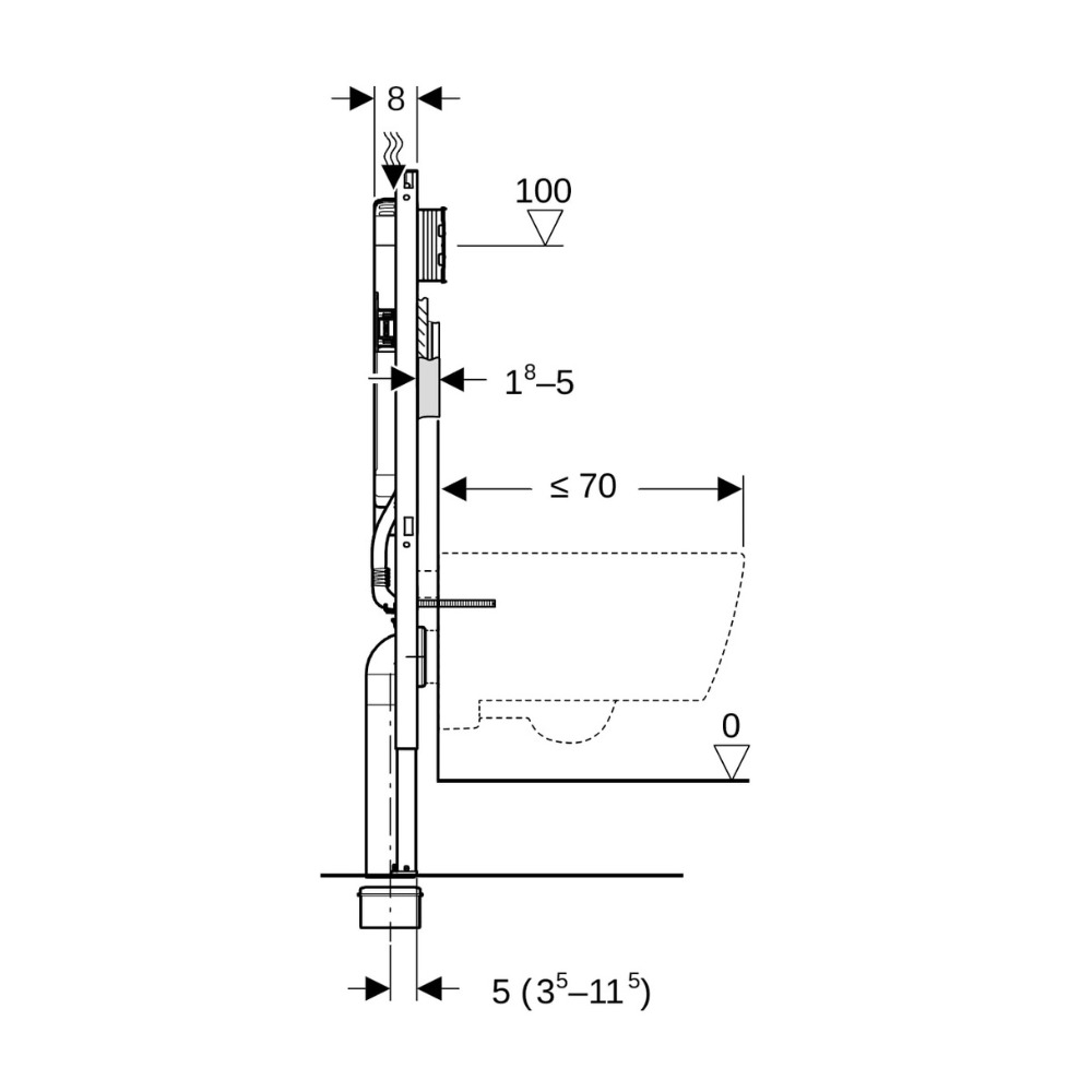- Equipé d'un fourreau destiné à la conduite d'alimentation pour raccordement des WC lavants Geberit AquaClean