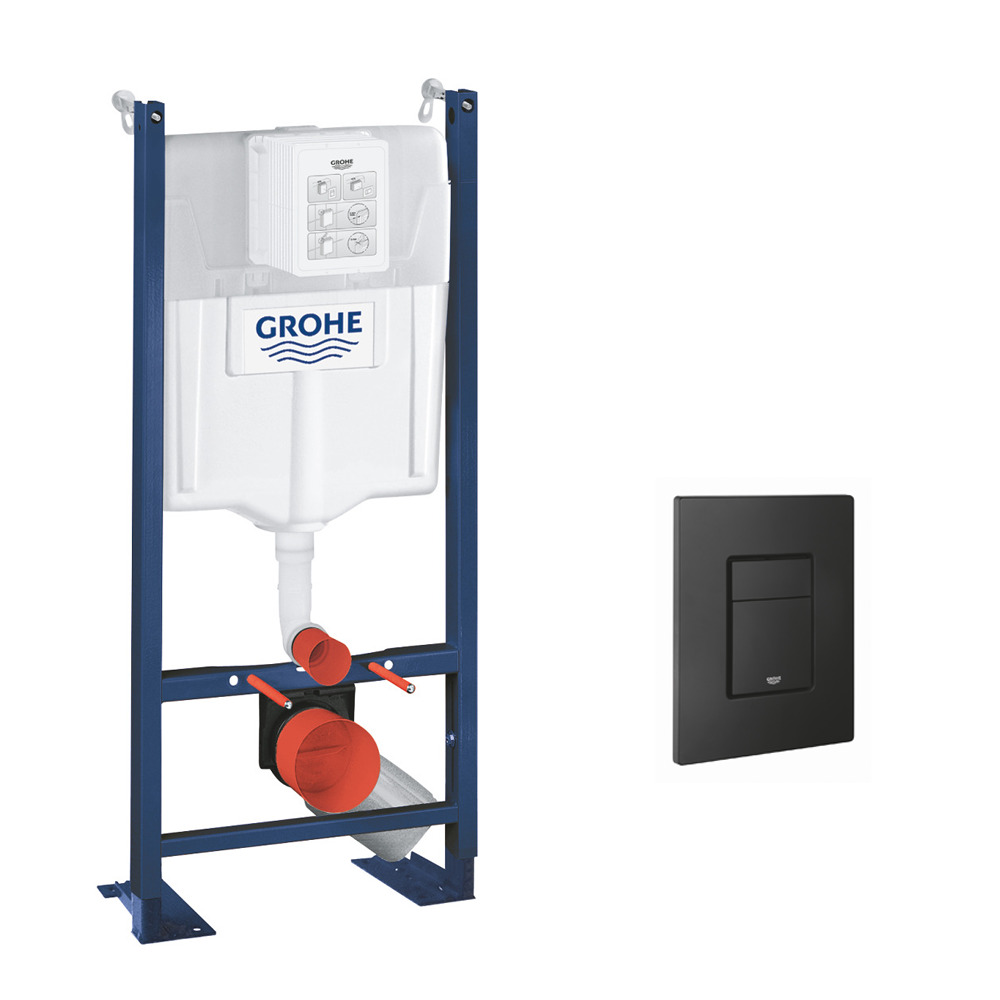 Grohe Pack Bâti autoportant Rapid SL + Plaque de commande double touche, Technologie anti-empreintes, Noir mat (39145000-KF0)