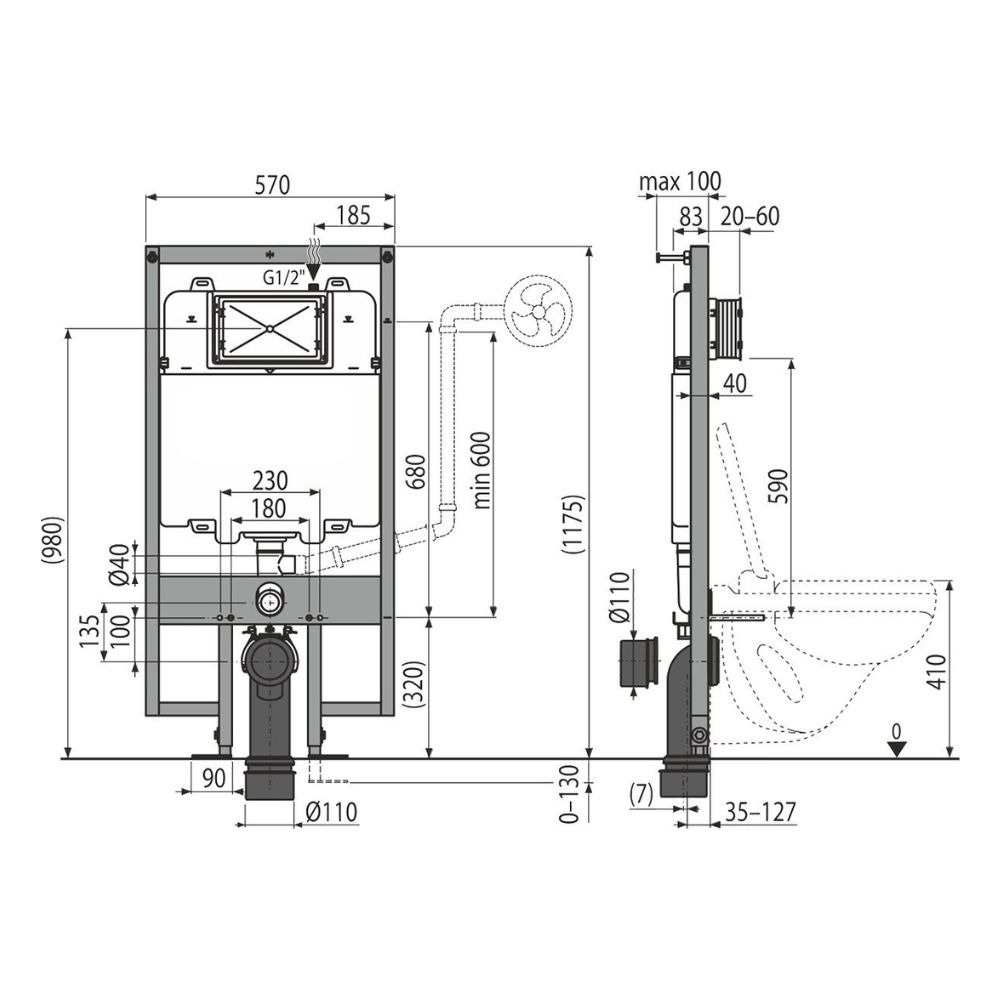 - Type de produit:Bâti-support pour WC suspendu