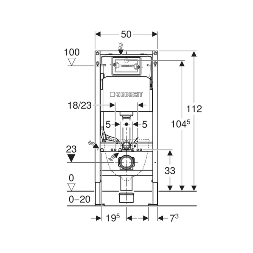 Caractéristiques du bâti-support pour WC suspendu, 112 cm, avec réservoir encastré Delta 12 cm, Geberit Duofix (458.103.00.2) :