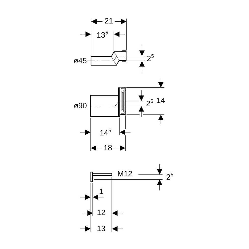 Geberit Jeu de manchettes raccordement désaxé 2,5 cm avec tige filetée (405.116.00.1)