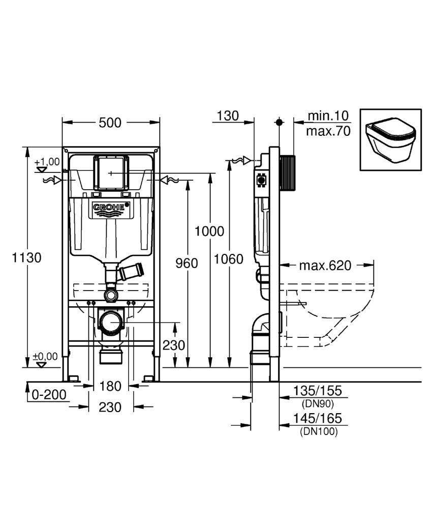 - Les WC avec surface de portée < 205 mm nécessitent un accessoire additionnel 38779000